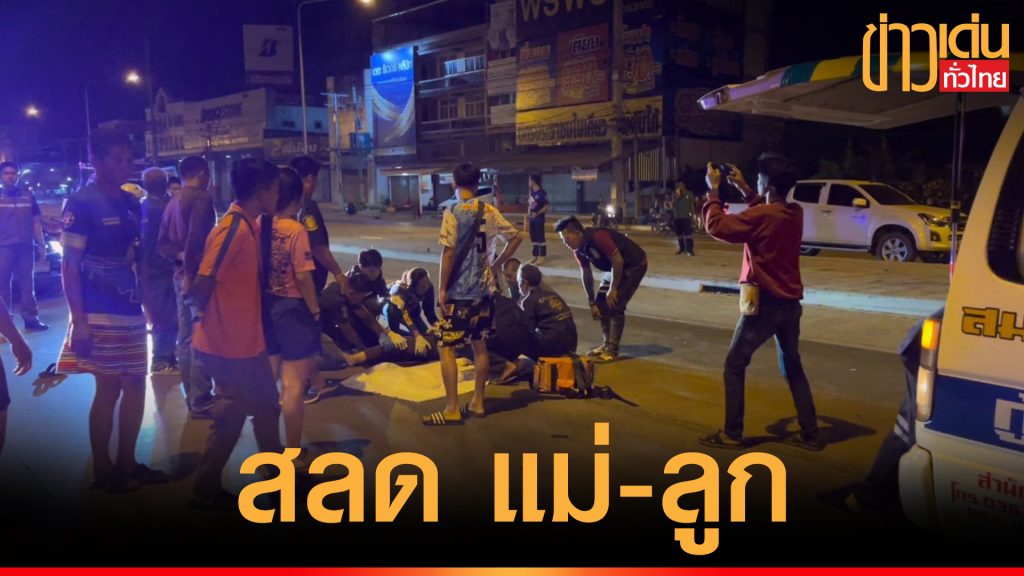 แม่ลูกขี่จยย.ไปเฝ้าคนป่วยข้ามถนนถูกรถเก๋งอ้างตัดหน้าชนอย่างจังลูกเจ็บหนักแม่ดับคาที่