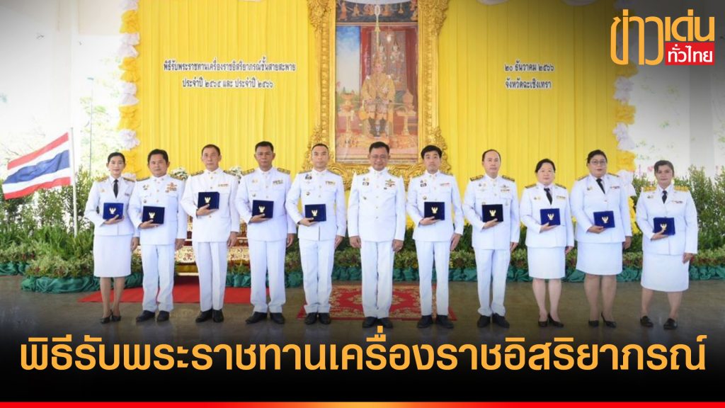 จังหวัดฉะเชิงเทรา จัดพิธีรับพระราชทานเครื่องราชอิสริยาภรณ์ สังกัดกระทรวงมหาดไทย เบื้องหน้าพระบรมฉายาลักษณ์พระบาทสมเด็จพระเจ้าอยู่หัว