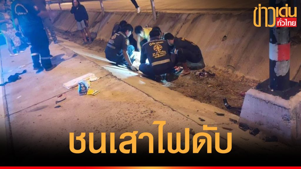 สลด หนุ่มขี่รถจยย. พุ่งชนเสาไฟส่องสว่างข้างทาง เสียชีวิต