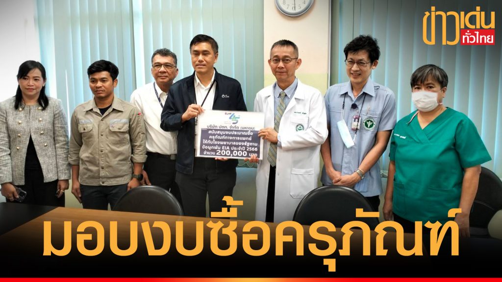 นายถิรนันท์ ไกรทองสุข ผู้จัดการฝ่ายบริหารคลังภาคตะวันออก บริษัท ปตท.จำกัด (มหาชน) มอบงบประมาณ จำนวน 200,000 บาท สำหรับซื้อครุภัณฑ์ทางการแพทย์ ให้กับโรงพยาบาลของรัฐตามข้อผูกพัน EIA ประจำปี 2566 แก่โรงพยาบาลแหลมฉบัง ตามข้อตกลงมาตรการลดผลกระทบต่อสุขภาพ ระยะดำเนินการโครงการท่าเทียบเรือและก่อสร้างถังเก็บผลิตภัณฑ์เพิ่มเติมของคลังก๊าซเขาบ่อยาฯ