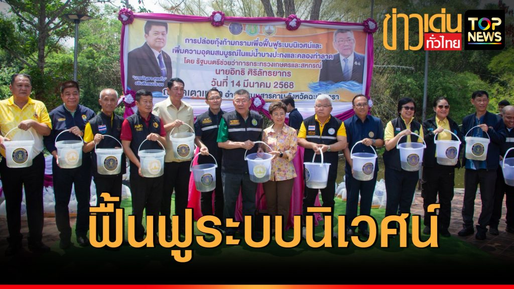 ‘รมช.อิทธิ’ ปล่อยพันธุ์กุ้งก้ามกราม ฟื้นฟูระบบนิเวศน์ เติมความอุดมสมบูรณ์สัตว์น้ำ “แม่น้ำบางปะกง” มุ่งสร้างความมั่นคงทางอาหาร