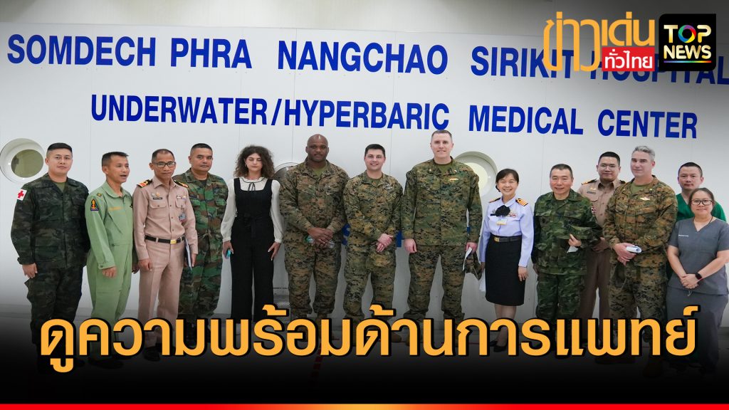 น.อ.หญิง นงลักษณ์ สิงหโกวินท์ รอง ผอ.รพ.สมเด็จพระนางเจ้าสิริกิติ์ พร. ให้การต้อนรับคณะผู้แทนกองกำลังสหรัฐอเมริกา ภาคพื้นอินโดแปซิฟิก ผู้แทนกองอำนวยการฝึกทางการแพทย์ COBRA GOLD 2025 ในกิจกรรม Hospital Tour ดูความพร้อมในด้านการแพทย์ และขอเข้าเยี่ยมดูงานในหน่วย ห้องปฏิบัติการสวนหัวใจฯ หอผู้ป่วยวิกฤตศัลยกรรมฯ แผนกธนาคารเลือดฯ ห้องตรวจโรคฉุกเฉินฯ และศูนย์เวชศาสตร์ความดันบรรยากาศสูงฯ ณ รพ.สมเด็จพระนางเจ้าสิริกิติ์ กรมแพทย์ทหารเรือ อ.สัตหีบ จ.ชลบุรี โดยมี ผู้แทนของหน่วยงานดังกล่าว ร่วมแนะนำขีดความสามารถของหน่วย ณ หน้างานนั้นๆ นิราช ทิพย์ศรี รายงาน