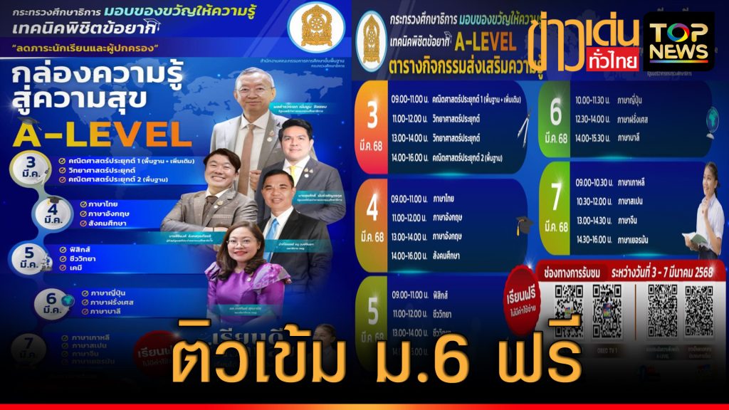 คุณส่ง สพฐ. จัดสอนเสริมออนไลน์ ติวเข้ม ม.6 เตรียมสอบ A-Level ฟรี!