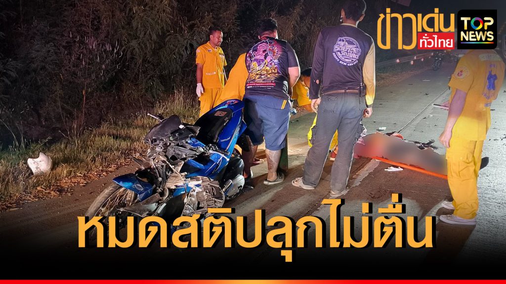 หนุ่มใหญ่ ซิ่งจยย. ชนท้ายรถพ่วง 18 ล้อ บาดเจ็บสาหัส หมดสติปลุกไม่ตื่น