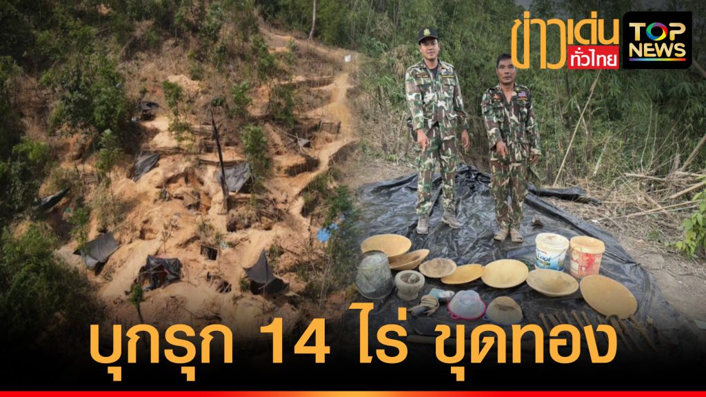 กาญจนบุรี ชาวบ้านรวมกลุ่มบุกรุกพื้นที่อุทยานขุดพรุน 14 ไร่ หาแร่ทองคำล้ำค่า เจ้าหน้าที่บุกจับแจ้ง 6 ข้อหาอ่วม