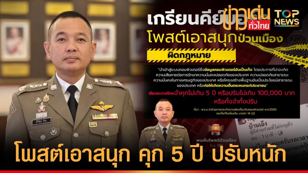 สำนักงานตำรวจแห่งชาติเตือนโพสต์เอาสนุก หวังป่วนเมือง โทษหนัก จำคุก 5 ปี ปรับ 100,000 บาท