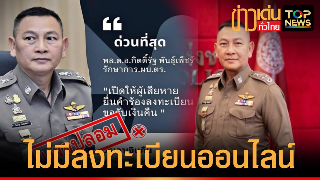 สำนักงานตำรวจแห่งชาติเตือนไม่มีการรับแจ้งความ-ลงทะเบียนคืนเงินผ่านโซเชียล