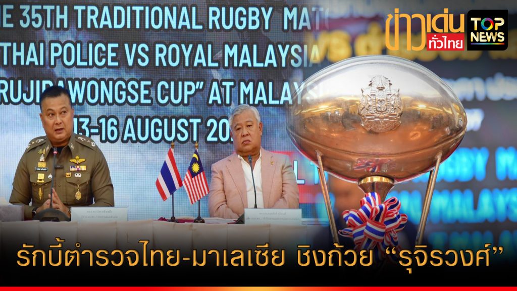 สำนักงานตำรวจแห่งชาติแถลงข่าวการแข่งขันกีฬารักบี้ฟุตบอลประเพณีตำรวจไทย-มาเลเซีย ชิงถ้วย “รุจิรวงศ์” ครั้งที่ 35 เพื่อสานสัมพันธภาพระหว่างสองประเทศที่มีมากว่า 6 ทศวรรษ วันนี้ (7 สิงหาคม 2567) เวลา 13.00 น. พล.ต.ท.กรไชย คล้ายคลึง ผู้ช่วยผู้บัญชาการตำรวจแห่งชาติ ในฐานะประธานคณะทำงานจัดการแข่งขันกีฬารักบี้ฟุตบอลประเพณีระหว่างตำรวจไทยและตำรวจมาเลเซีย พร้อมด้วยพล.ต.ต.เทอดศักดิ์ รุจิรวงศ์ ที่ปรึกษาคณะทำงานฯ แถลงข่าวการแข่งขันกีฬารักบี้ฟุตบอลประเพณีตำรวจไทยและตำรวจมาเลเซีย ชิงถ้วย “รุจิรวงศ์” ครั้งที่ 35 ณ ห้องสารสิน ชั้น 2 อาคาร 1 สำนักงานตำรวจแห่งชาติ