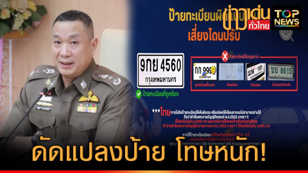 ศูนย์บริหารงานจราจร สำนักงานตำรวจแห่งชาติ เตือนผู้ใช้ป้ายทะเบียนรถผิดกฎหมาย ดัดแปลงป้าย เสี่ยงโทษหนัก