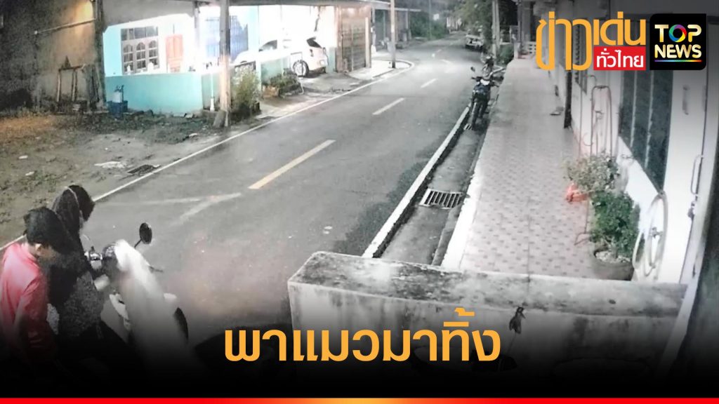 เปิดภาพวงจรปิดนาทีคนใจบาปขับมอเตอร์ไซค์เอาแมวใส่กระสอบไปทิ้งหน้าบ้านของชาวบ้าน