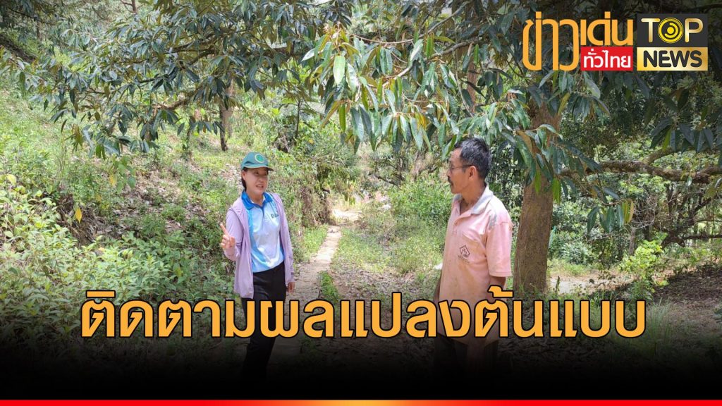 เกษตรอำเภอเบตงติดตามแปลงต้นแบบการใช้แสงไฟป้องกันหนอนเจาะเมล็ดทุเรียน