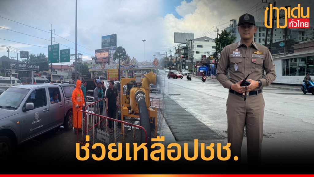 ตร.จราจรพัทยาลงพื้นที่ช่วยเหลือชาวบ้านหลังฝนตกหนัก