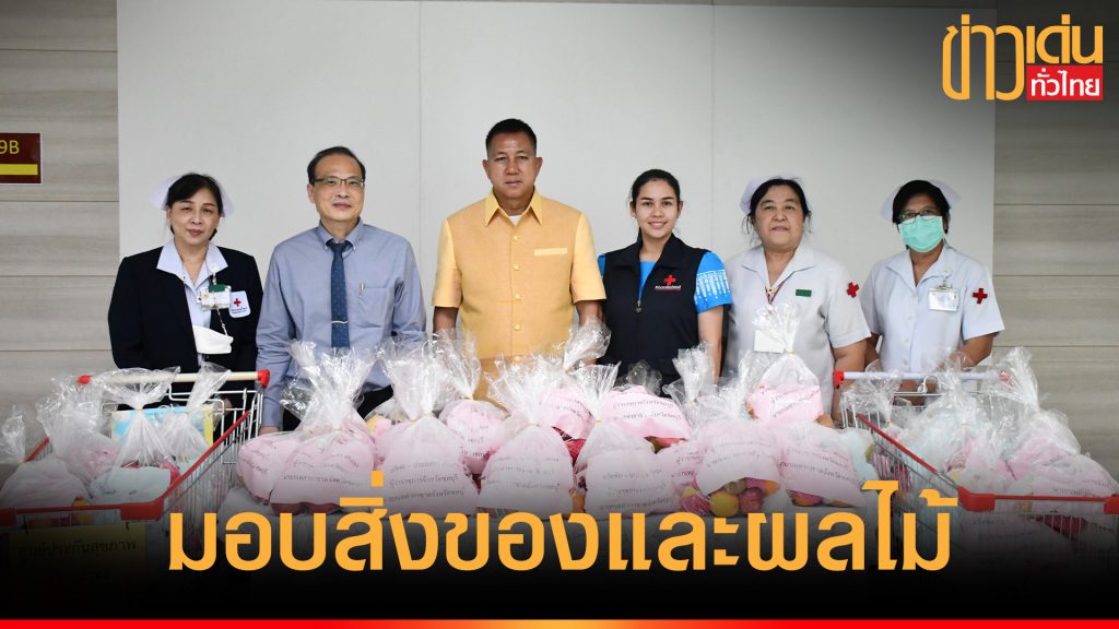ผู้ว่าฯ พร้อมด้วย นายกเหล่ากาชาดชลบุรี ร่วมมอบสิ่งของและผลไม้ให้แก่ จนท. ผู้ปฏิบัติงาน รพ. สมเด็จพระบรมราชเทวี ณ ศรีราชา