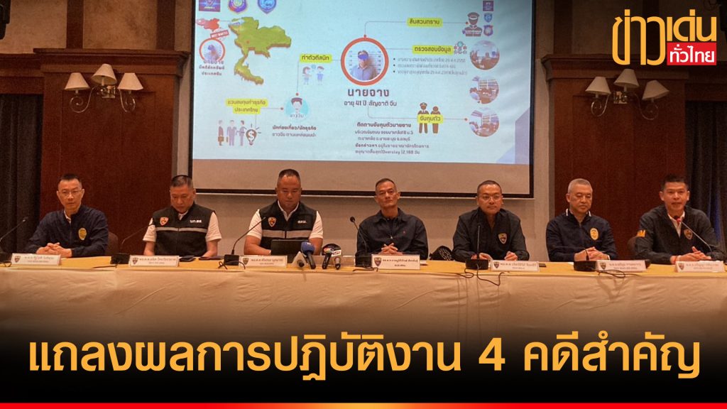 ผบช.สตม.นำทีมแถลงข่าวผลการปฏิบัติงาน 4 คดีสำคัญ รวบหนุ่มสวิสหนีหมายแดง-ไวกิ้งหนีหมายจับ-แก๊งเกาหลีแย่งงานคนไทย-หนุ่มจีนลักลอบอยู่ไทย 5 ปี