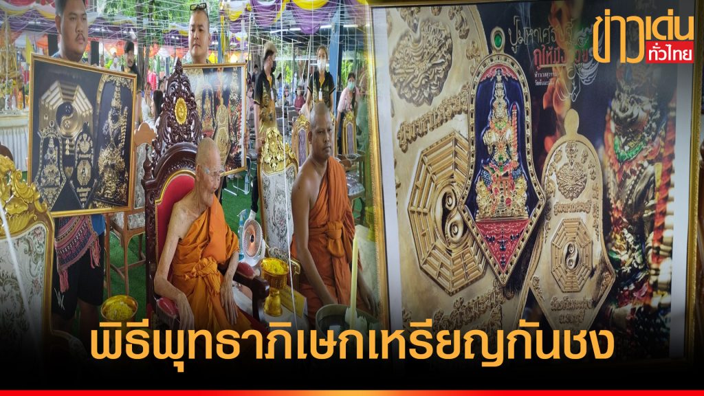 คนนับพันแห่ร่วมพิธีพุทธาภิเษก เหรียญกันชง สวดนพเคราะห์ เสริมดวง เปิดทรัพย์ ปู่ท้าวเวสสุวรรณ ยักษ์วัดต้นมะม่วงให้ลูกรวย รุ่น ” กู ให้ มึ ง ร ว ย “