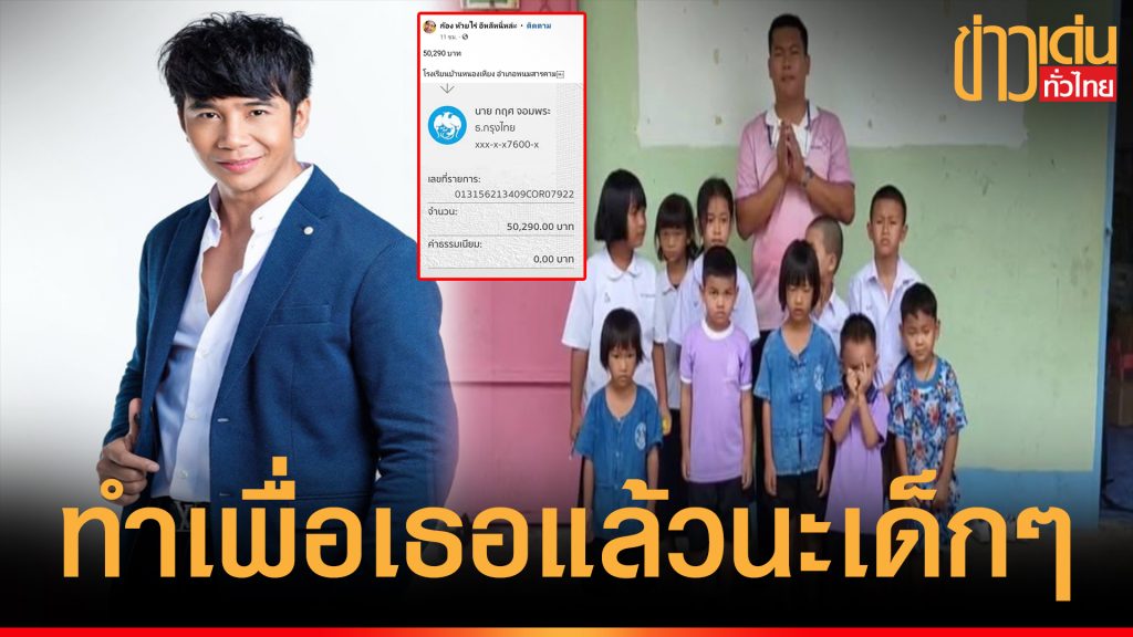 ก้องห้วยไร่ โพสต์เฟสบุ๊คส่วนตัว โชว์ sleep โอนเงิน มอบให้เด็กๆ โรงเรียนบ้านหนองเหียง จำนวน 50,290 บาท