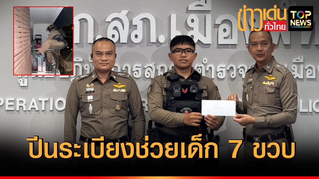 ชื่มชม ส.ต.ต.ปีนระเบียง ช่วยเด็ก 7 ขวบ