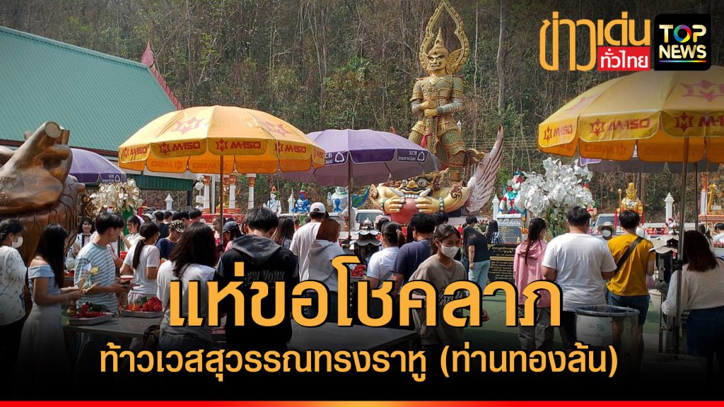 เมื่อเวลา 11.00 น.วันที่ 26ม.ค.68 ที่ริมอุโบสถวัดเขาช่องลม ตำบลเขาคันทรง อำเภอศรีราชา จังหวัดชลบุรี ซึ่งเป็นเสาร์ปลายเดือนและใกล้หวยออกได้มีประชาชนเดินทางมาที่วัดเขาช่องลมอย่างต่อเนื่อง ตั้งแต่ช่วงเช้าเพื่อมากราบไหว้ “ท้าวเวสสุวรรณทรงราหู” (ท่านทองล้น) องค์ใหญ่สูง 9.9 เมตร ที่ตั้งตระหง่านอยู่ที่หน้าเขาช่องลม พร้อมนำเครื่องเซ่นสังเวย ดอกกุหลาบแดง น้ำแดง ผ้าแดง ประทัด มาบูชา พร้อมจุดธูปเสี่ยงทายในกระถางที่ตั้งไว้ด้านหน้าองค์ท้าวเวสสุวรรณทรงราหู เพื่อหาเลขเด็ดจากธูปเป็นแนวทางซื้อสลากกินแบ่งรัฐบาลงวดวันที่1กุมภาพันธ์ 2568นี้ ซึ่งได้มีประชาชนที่เคยได้รับโชคลาภพากันมาออกโรงทานแจกขนม, น้ำดื่มกันเป็นจำนวนมากเนื่องจากศรัทธาในองค์ท้าวเวสสุวรรณทรงราหู (ท่านทองล้น)กัน ขณะที่มีข่าวจากเพจของวัดเขาช่องลมโพสว่าการออกสลากกินแบ่งรัฐบาลงวดเดือนธันวาคม2567และเมื่อต้นเดือนมกราคม2568 ที่ผ่านมา ได้มีผู้ถูกสลากกินแบ่งรัฐบาลรางวัลที่ 1กัน3คนล้วนเป็นหนุ่มสาวโรงงานในนิคมอุตสาหกรรมในพื้นที่อำเภอปลวกแดง จังหวัดระยอง