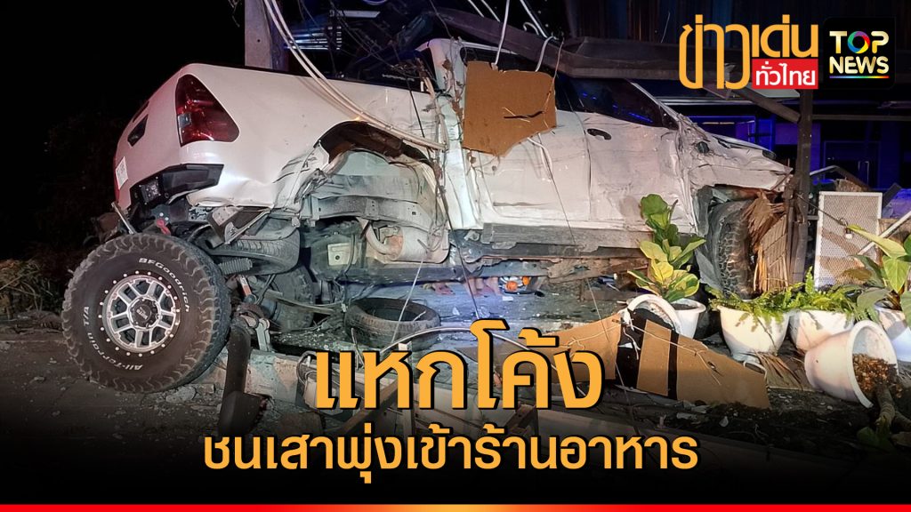 เมาซิ่ง ! หนุ่มใหญ่ซิ่งกระบะออฟโรดแหกโค้งพุ่งชนเสาไฟฟ้า พุ่งเข้าร้านอาหารริมถนนพังยับ