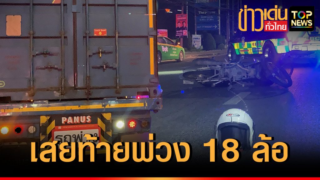พ่วง 18 ล้อจอดรอเลี้ยว จยย.เสยท้ายสาหัส
