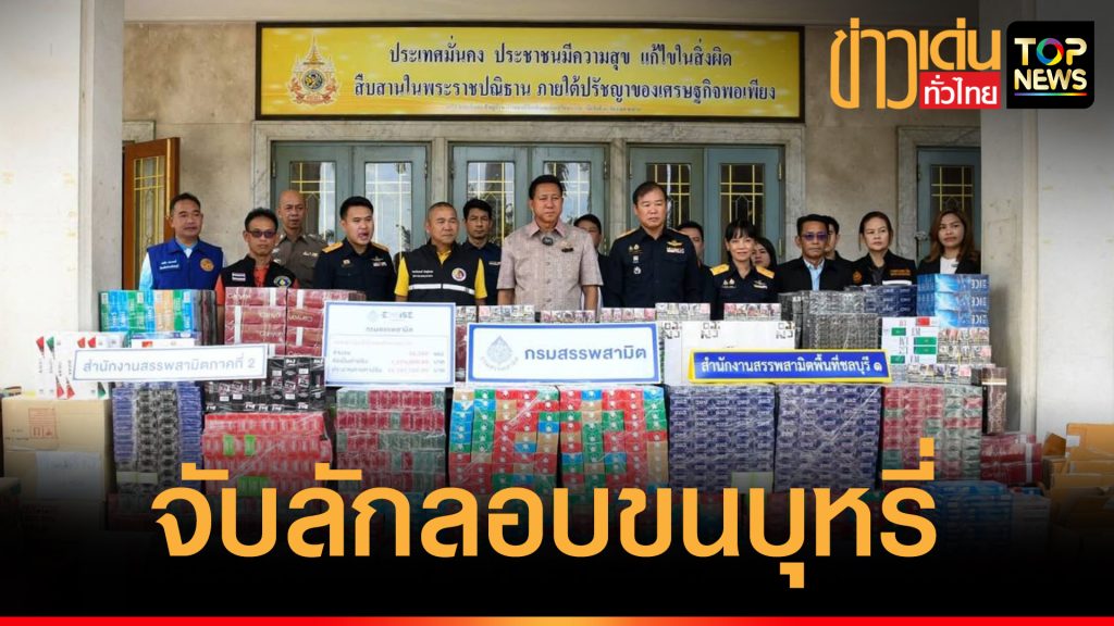 ผู้ว่าราชการจังหวัดชลบุรี ร่วมกับสรรพสามิตภาค 2 แถลงข่าวจับ ลักลอบขนบุหรี่ นำเข้าโดยไม่ได้เสียภาษี