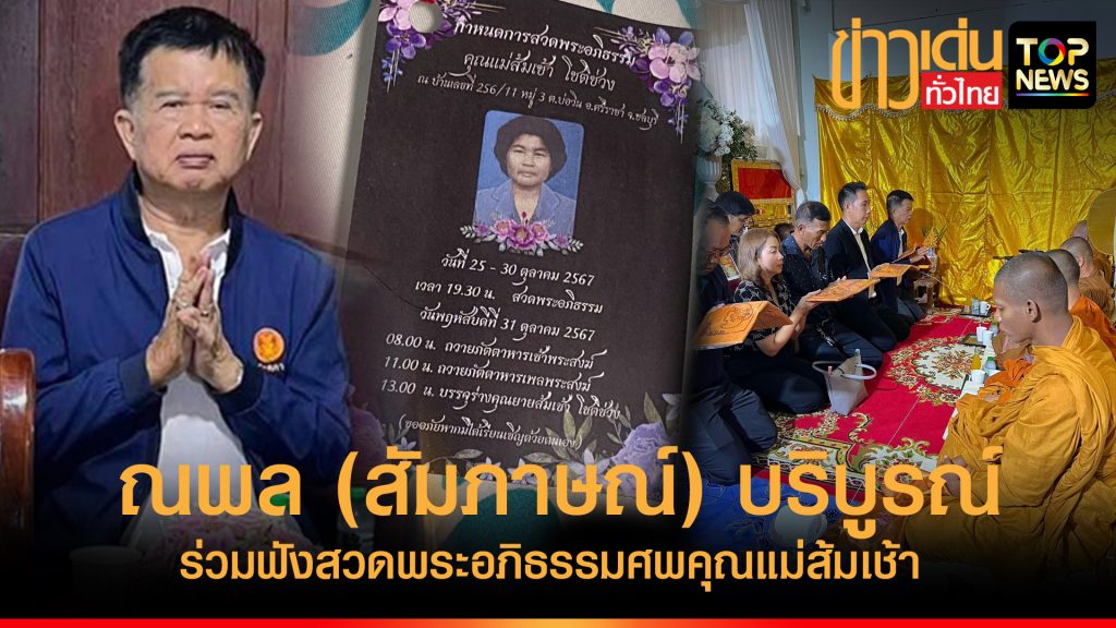 เมื่อช่วงค่ำวันที่ 25 ตุลาคม 67 ณพล บริบูรณ์ – นภชนก เหมือนนามอญ ที่ปรึกษา เดินทางมาร่วมสวดพระอภิธรรมศพคุณแม่ส้มเช้า โชติช่วง คุณแม่นางอำไพ สงค์สุข(ป้าหนุ่ย)ที่บ้านเลขที่ 256 /11 ม.3 ต.บ่อวิน อ.ศรีราชา จ.ชลบุรี โดยมีณพล สัมภาษณ์ บริบูรณ์ ที่ปรึกษา นายสรชาติ วิชย สุวรรณพรหม สมาชิกวุฒิสภา(สว.)นายกสมาคมสื่อมวลชนและนักประชาสัมพันธ์ภาคตะวันออก และคณะที่ปรึกษาคณะอนุกรรมาธิการ การเงินการคลัง สภาผู้แทนราษฎร และ น.ส.นภชนก เหมือนนามอญ ที่ปรึกษาประธานคณะกรรมาธิการการคุ้มครองผู้บริโภค สภาผู้แทนราษฎร บก.ชลนิวส์ทีวีออนไลน์ และญาติสนิท มิตรสหาย มาร่วมงานกันอย่างคับคั่ง สำหรับการสวดพระอภิธรรมศพคุณแม่ส้มเช้า โชติช่วง จะมีไปถึงวันที่ 30 ตุลาคม ตั้งแต่เวลา 19.30 น.เป็นต้นไป และในวันที่ 31 ตุลาคม เวลา 08.00 น. ถวายภัตตาหารเช้าแด่พระสงฆ์ […]