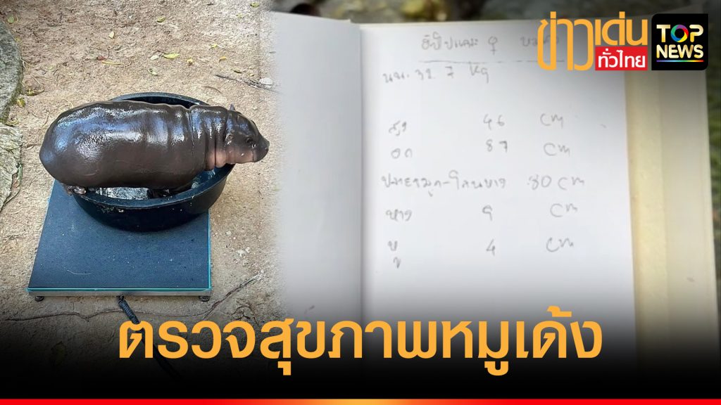 ตรวจสุขภาพ “หมูเด้ง” แข็งแรงดี น้ำหนักตัวเพิ่มขึ้นจาก 5 กิโล เป็น 32.7 กิโล