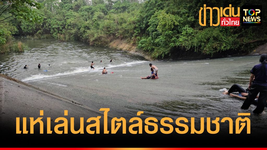 นทท. แห่ เล่นสไลเดอร์ฝายน้ำล้น สไตล์ธรรมชาติ อ่างเก็บน้ำห้วยตู้ จำนวนมาก
