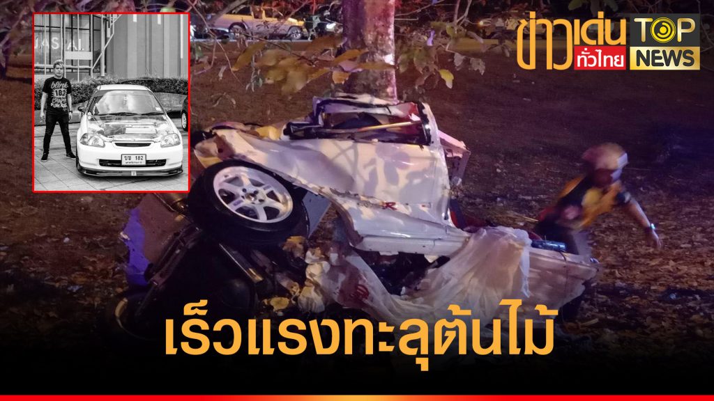 สลด! นักแต่งรถแข่งชื่อดังเมืองคอน ควบเก๋งชนต้นไม้ ดับสยอง 2 ศพ