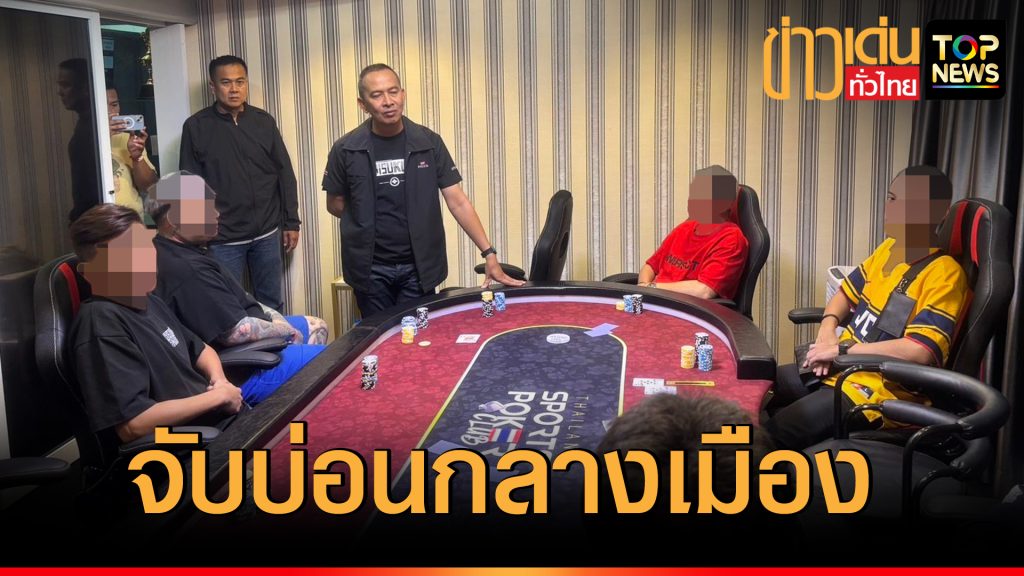 บุกจับบ่อนโป๊กเกอร์กลางเมือง รวบ 13 นักพนัน เงินหมุนเวียนหลายล้านบาท