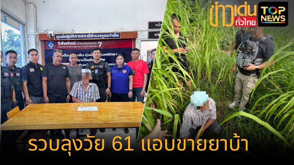 รวบคาหนัง! ชายวัย 61 ค้ายาบ้าซุกเพิงพักกลางป่าเนเปียร์ ท่ามะกา