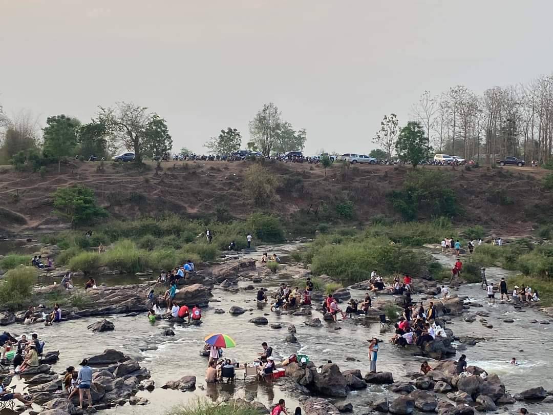 เมื่อเวลา 18.00 น.วันที่ 17 มี.ค.67 ช่วงเทศกาลสงกรานต์ใกล้มาถึงและวันหยุดสุดสัปดาห์ ประกอบกับอากาศร้อนขึ้นเป็นลำดับและแม่น้ำเหืองมีระดับลดน้อยและแห้ง ประชาชนและ นทท.ต่างหลบร้อนลงเล่นน้ำนั่งเล่นที่โขดหินเรียงรายกลางแม่น้ำเหืองที่” แก่งโตน” ริมแม่น้ำเหืองกั้นระหว่างประเทศไทย ด้าน อ.ท่าลี่ จ. เลย กับชาวเมืองแก่นท้าว แขวงไชยะบูลี สปป.ลาว